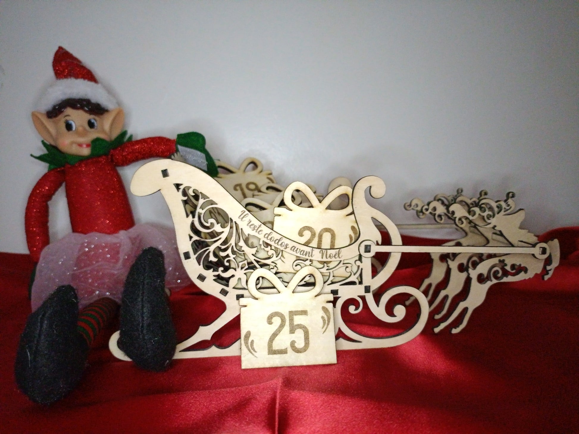 Traîneau du Père Noël en bois – Compte à rebours avant Noël décoratif 🎄